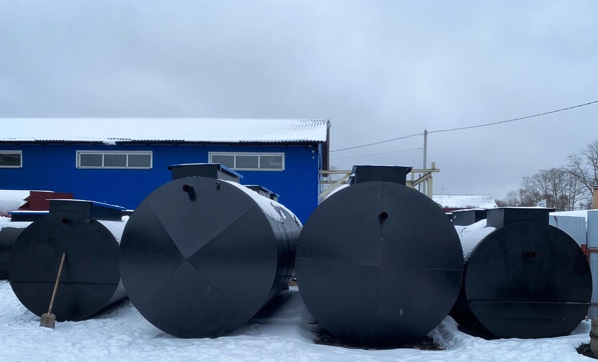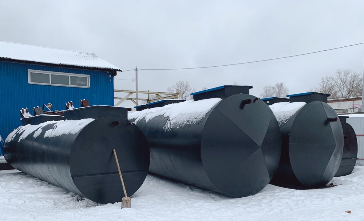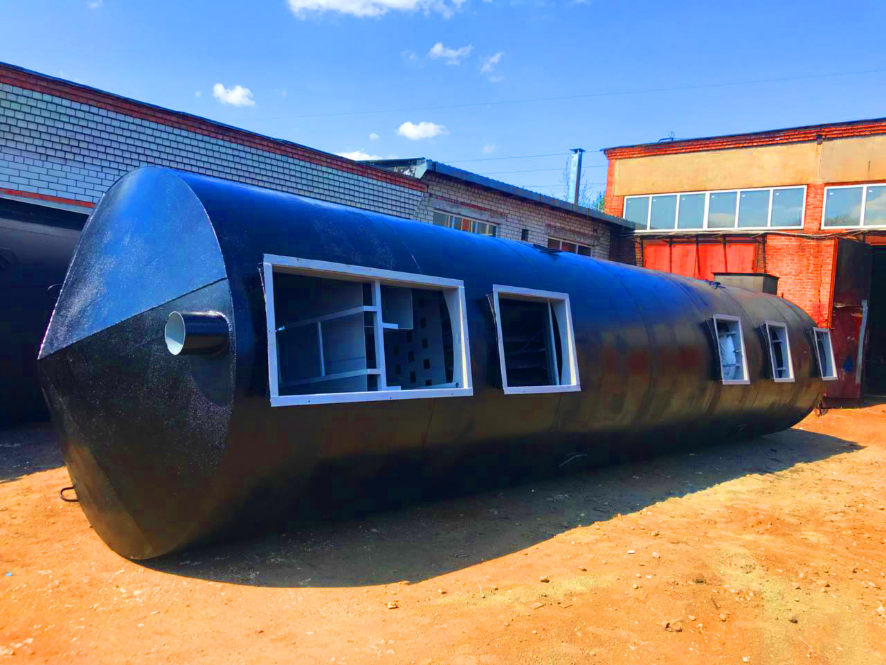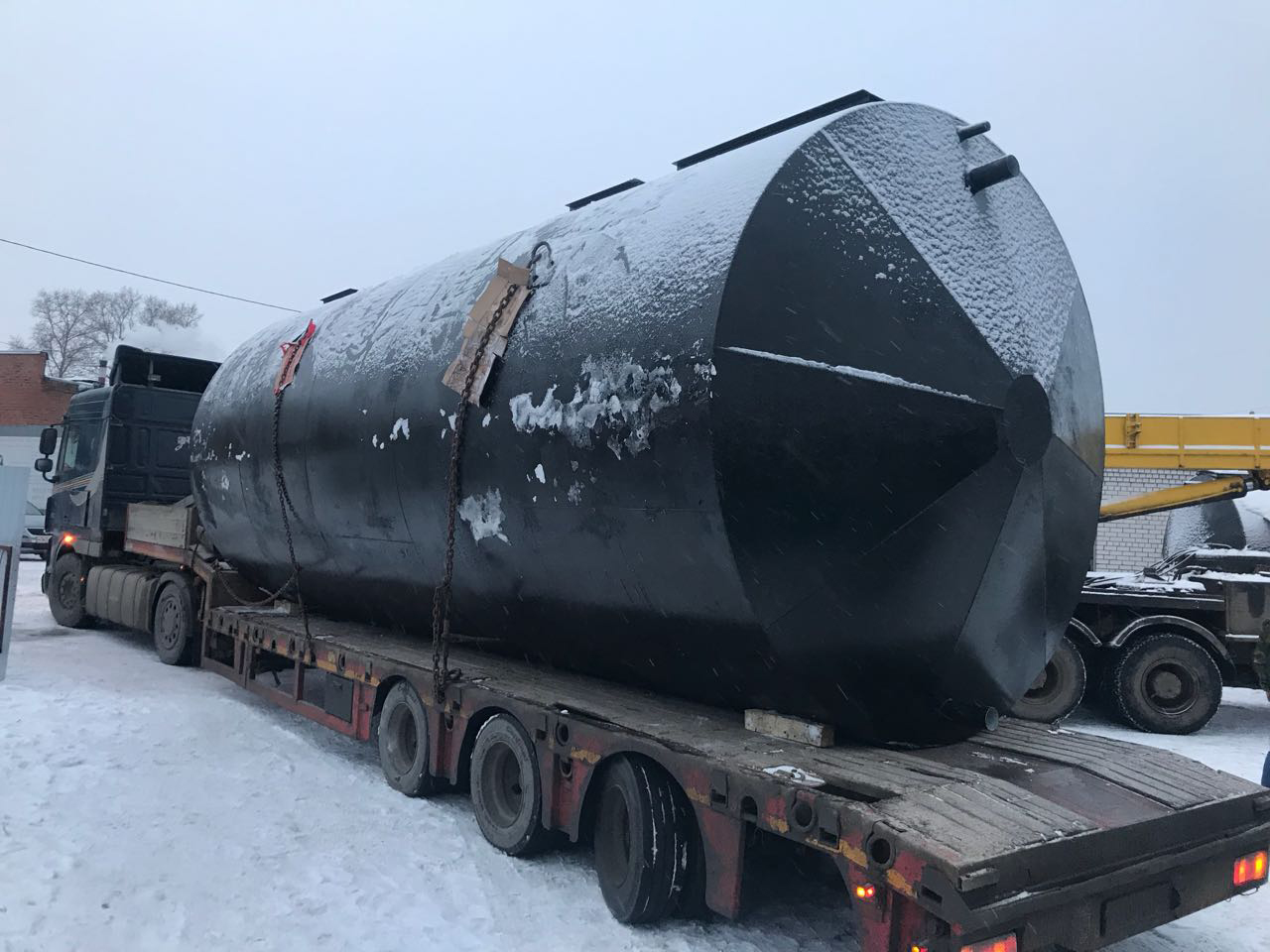 Габариты очистного сооружения: 2 емкости длиной 8400 / диаметром 2400 / весом 9800 кг.